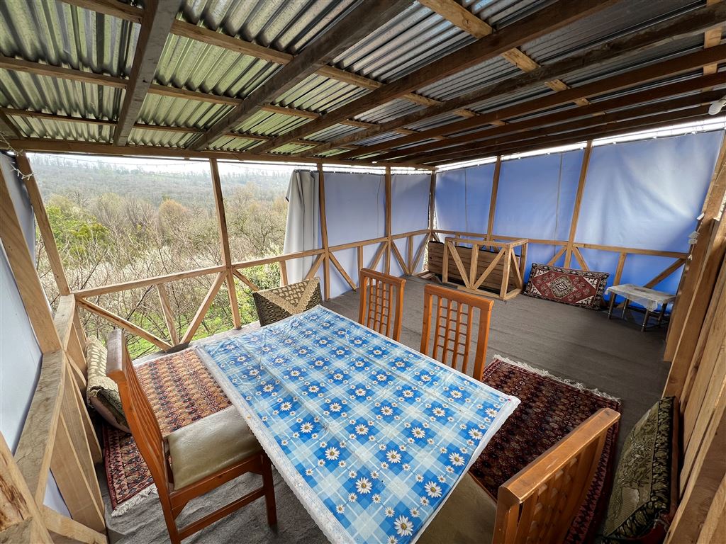 این کلبه چوبی چشم انداز زیبایی رو به باغ و جنگل دارد و دارای باغی سه هزار متری است و پنج جای پارک در پارکینگی سر باز برای مسافران در نظر گرفته شده است و پنج کف خواب در اختیار مهمانان قرار میگیرد و همچنین در فاصله ۲۰۰ متری کلبه چند آبشار کوچک و بزرگ بسیار زیبا قرار دارند.