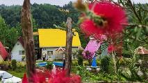 این ویلا در یک مجموعه اقامتی زیبا و سرسبز قرار دارد که محوطه آن توسط درختان و پوشش گیاهی متنوع و آبنما و حوضچه و آلاچیق تزیین شده است،همچنین در این مجموعه اقامتگاه های دیگری نیز وجود دارد و محوطه آن با ویلاهای دیگر مشترک میباشد .
