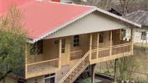 این اقامتگاه درزمینی به مساحت۴۵۰مترودریک طبقه وسه واحد،طبقه همکف یک واحدتک خوابه۸۰متری وطبقه اول دوواحددوخوابه۶۰متری چوبی دربافت روستایی ودرپای کوه وکنارچشمه ودرمسیرییلاقات ماسال بناشده