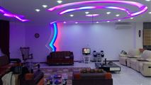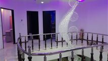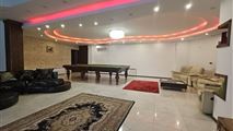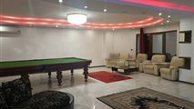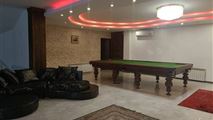 طبقه اول سالن و اشپزخانه و سرویس بهداشتی بهمراه میز بیلیارد و فوتبال دستی و دستگاه صوتی و تصویری