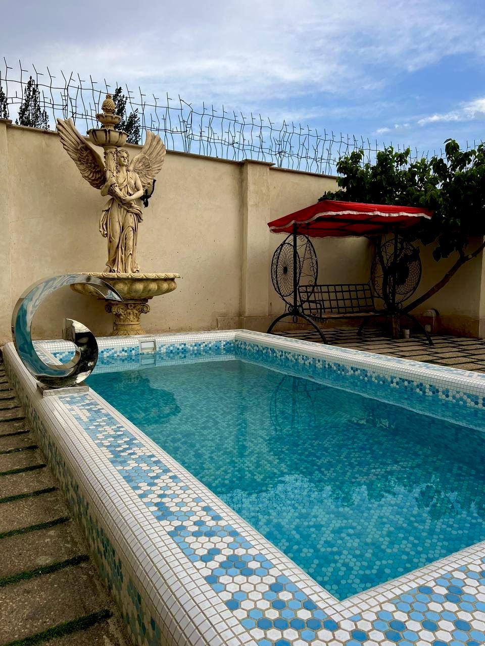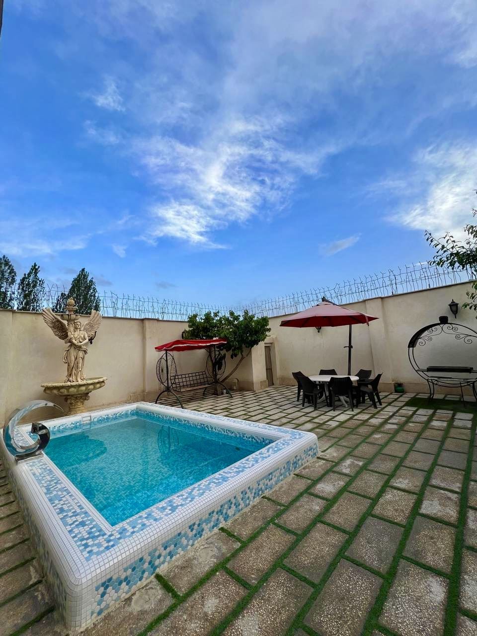 استخر روباز این ویلا که از اواسط اردیبهشت ماه قابل ارائه به میهمانان است استخربه ابعاد ۶ در ۴ متر و به ۱٫۸ متر در اختیار میهمانان می باشد