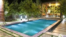 ویلای مدرن دنج، وسط باغ 10 هزار متری میوه، فول امکانات شامل 2 اتاق خواب، 1 خواب مستر، 2 کولر گازی و 1 کولر آبی، استخر آب گرم، باربیکیو گازی و ذغالی، آلاچیق به همراه صندلی های تابی، آتشکده، محوطه و ....