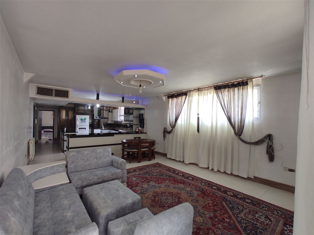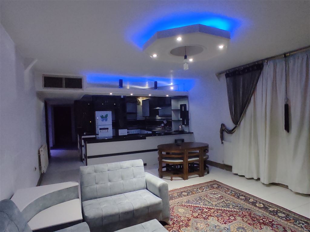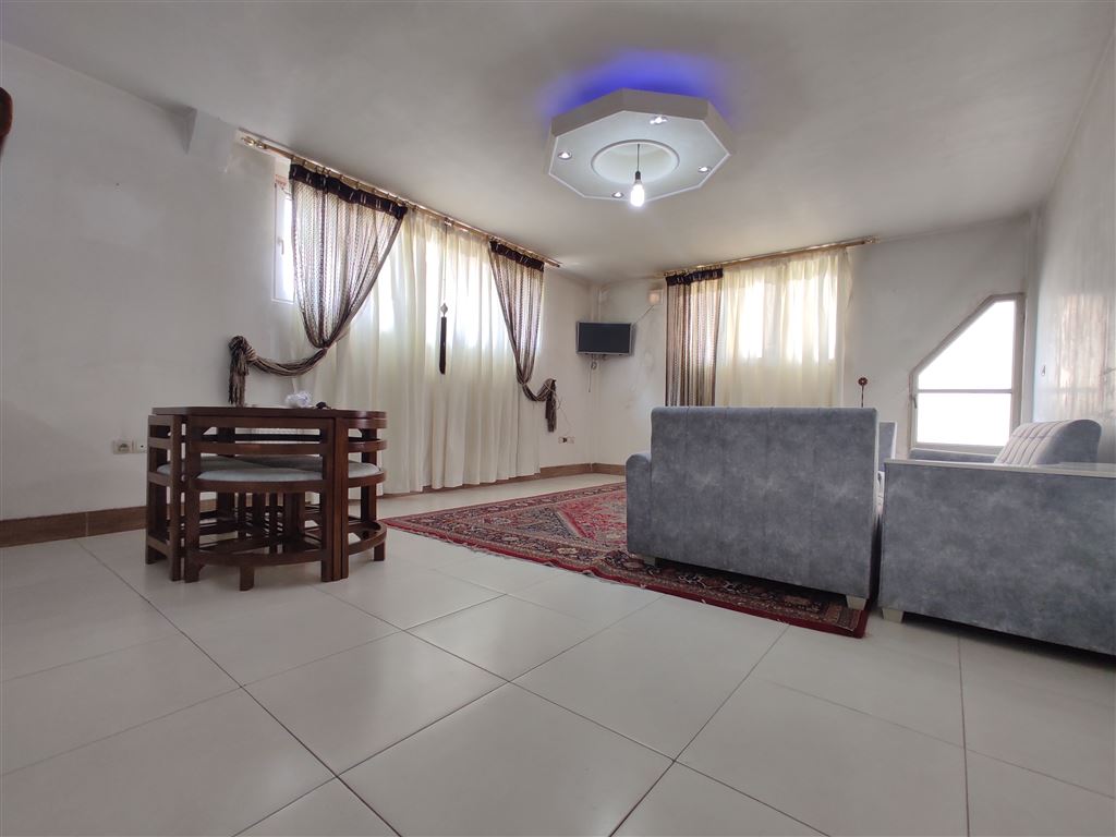 - اتاق پذیرایی دارای مبلمان، میز غذا خوری ۶ نفره ، تلویزیون LED می باشد.