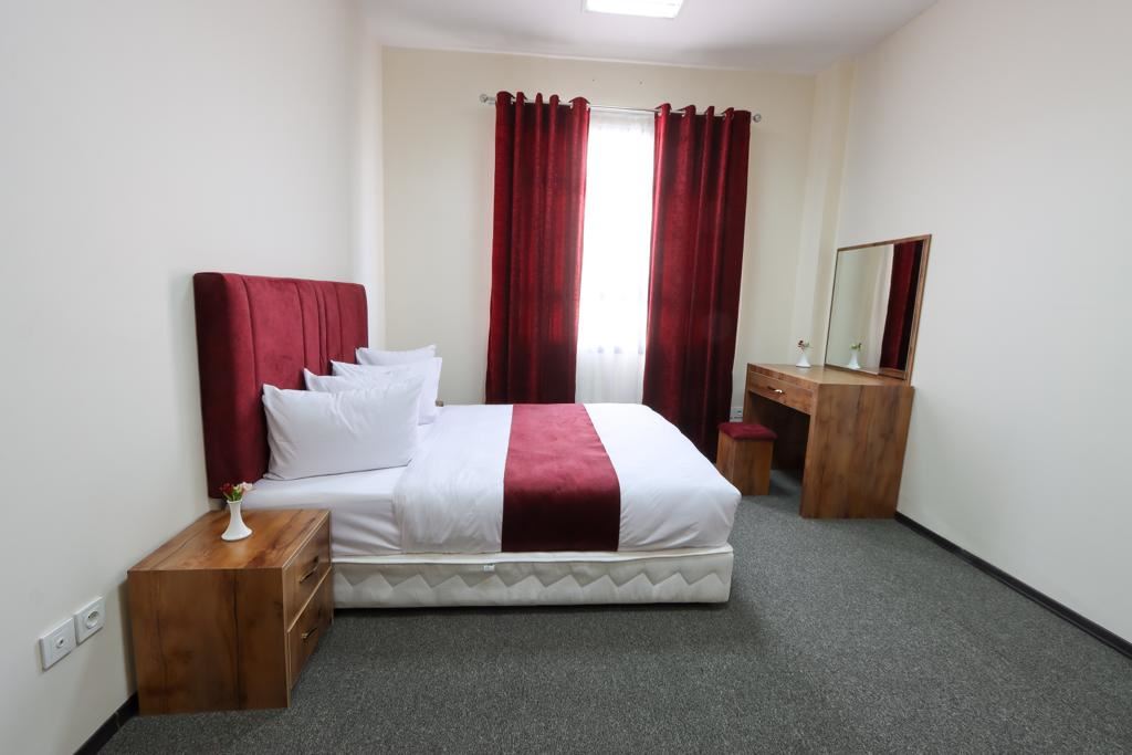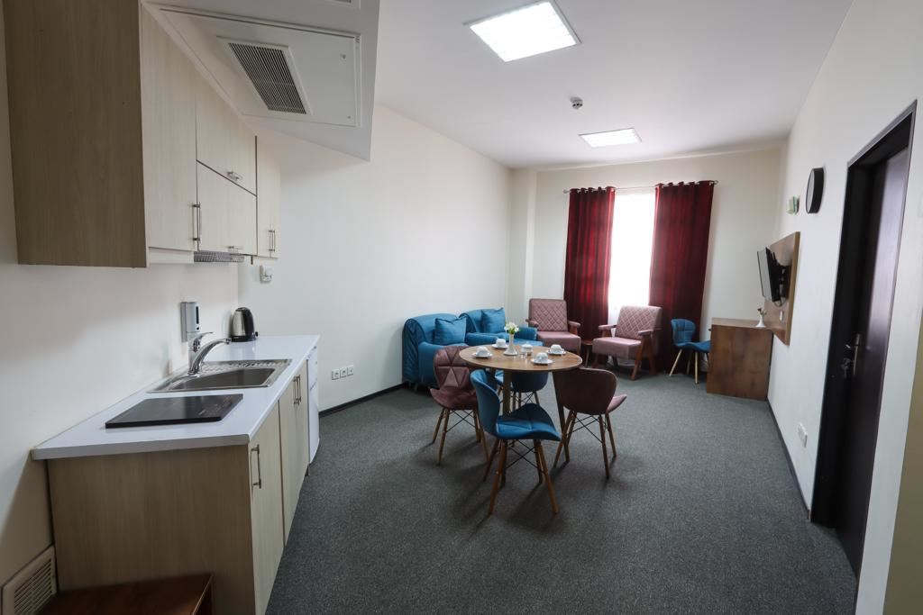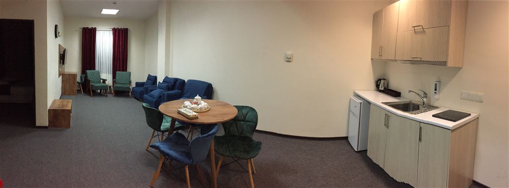 سوییت شامل 4 تخت می باشد. مجهز به : - اتاق خواب مجزا - سالن نشیمن - سرویس بهداشتی ایرانی و فرنگی به صورت جداگانه - تخت دابل (دو نفره) ، تخت های مبلی تک نفره - میز آرایشی و آینه - تلویزیون - میز تحریر - مبل راحتی - میز ناهارخوری به همراه صندلی - سرویس چایخوری - یخچال و گاز رومیزی دیجیتالی - سیستم سرمایشی و گرمایشی - ظروف آشپزی و سرو غذا - کمدهای جادار برای قراردادن لباس ها و چمدان ها - حوله، دمپایی و سایر وسایل بهداشتی امکانات هتل آپارتمان آستانه: - لابی - اتاق امانت چمدان ها - آسانسور، ویلچر - پارکینگ اختصاصی - تراس دنج هتل با فضای کافی شاپ با نمای حرم مطهر سید علاالدین حسین مزیت های دیگر: - دسترسی راحت و آسان به حرم مطهر سید علاالدین حسین (آستانه)، شاهچراغ جهت زیارت - دسترسی راحت به اماکن تاریخی مسجد عتیق، ارگ کریمخان، بازار وکیل، سرای مشیر، موزه پارس، نارنجستان قوام، مسجد نصیرالملک و... - دسترسی سریع و راحت به سالن ورزشی با امکانات کامل، سالن بیلیارد، فوتبال دستی، گیم نت، سالن آرایشگاه بانوان و آقایان - دسترسی به مراکز خرید و پزشکی