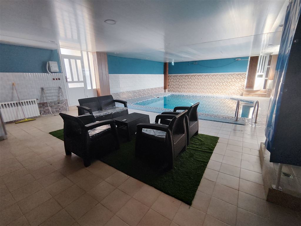 ویلای سه خوابه دو خواب مستر وسایل بازی بیلیارد فوتبال دستی الاچیق و آتشکده برای شب نشینی ، استخر سرپوشیده آبگرم با سیستم تصفیه عالی ،با ویو کوه و تله کابین، حیاط دلنشین زیبا پارکینگ مسقف برای سه ماشین، در نزدیکی تله کابین رامسر ( شهربازی و مجموعه آبی، رستوران، فست فود، مرکز خرید ), در نزدیکی رستوران سنتی بانو مارجان و رستوران کشتی یک ویلا نمای چوبی و سقف چوبی که تداعی کلبه چوبی برای شما مهمان عزیز دارد
