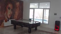 ۷۲۰ متر زمین ۱۱۵ متر بنا دوخوابه مبله سیستم صوتی و تصویری میز اراکی و فوتبال دستی استخر آب گرم با تسویه خانه فعال پارکینگ رو باز برای ۵ماشین داخل حیاط