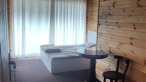 در طبقه پایین شامل پذیرایی؛آشپذخانه؛سرویس فرنگی و ایرانی و حمام و در طبقه بالا شامل دو اتاق خواب با نمای تمام شیشه ای به همراه دو تخت دونفره ؛میز و صندلی و تراس بزرگ رو به جنگل و بام سبز میباشد.
