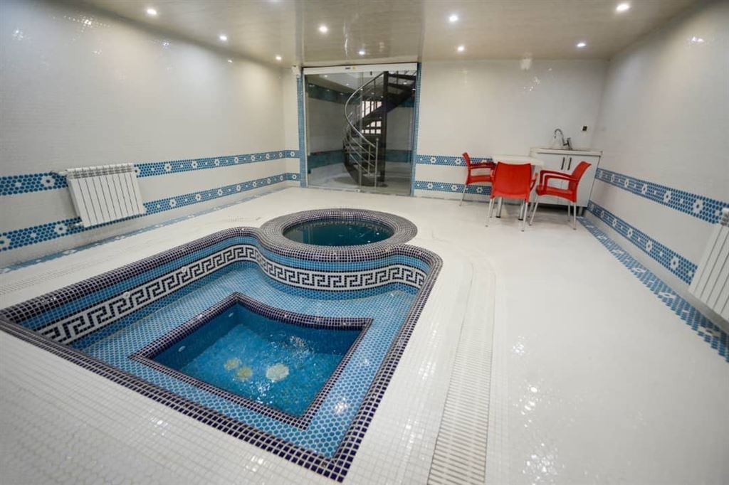 1000متر زمین دارای 500متر بنا در 4طبقه استخر روباز باآبگرم و دارای سونا بخار وجکوزی سرد و گرم در زیر زمین،بیلیارد،فوتبال دستی، سیستم صوتی، آلاچیق و آتشکده، کولر گازی و گرمایش ازکف