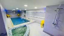 استخر دارای آب گرم میباشد و سیستم تصفیه آن اتوماتیک بصورت ۲۴ ساعته،متراژ استخر حدود ۶۰متر که خوداستخر ابعادش ۳×۷