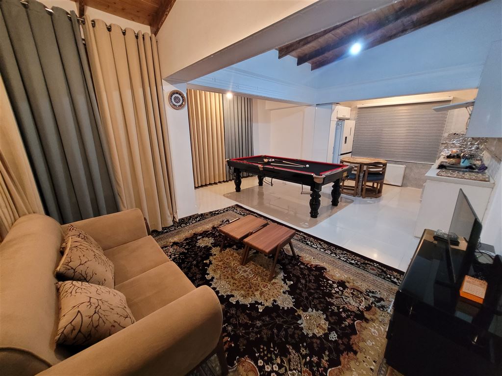 - اتاق پذیرایی دارای مبلمان و تلویزیون