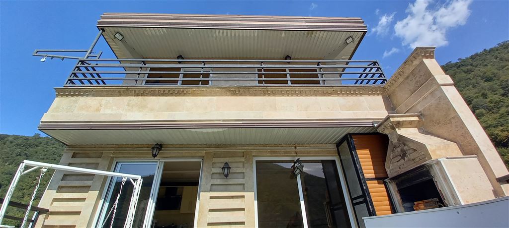 ♦️طراحی سازه : سنگ رومی + نرده آهنی + درب و پنجره های بزرگ دوجداره + کف پالازموکت +