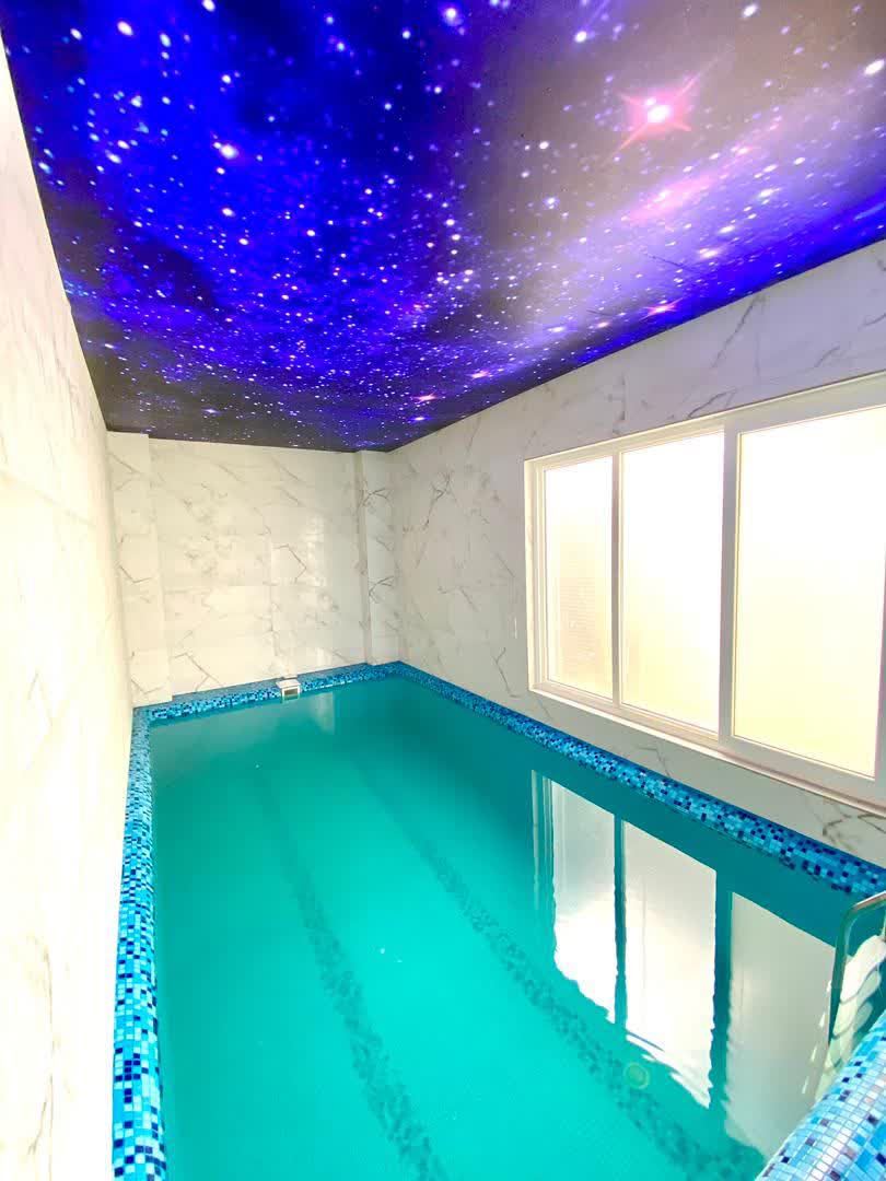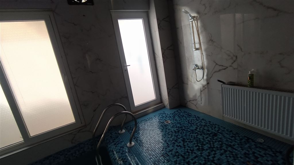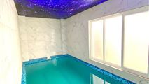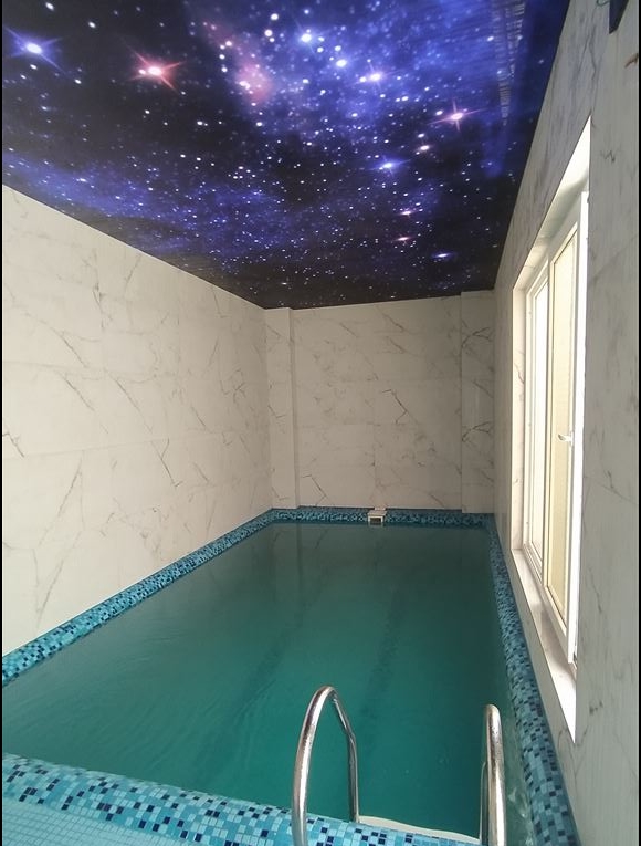 استخر سرپوشیده آبگرم که به سیستم تصفیه اتوماتیک مجهز است به ابعاد ۵ در ۳ متر و به عمق ۱.۶ متر در تمام فصول سال آماده استفاده میهمانان می باشد.