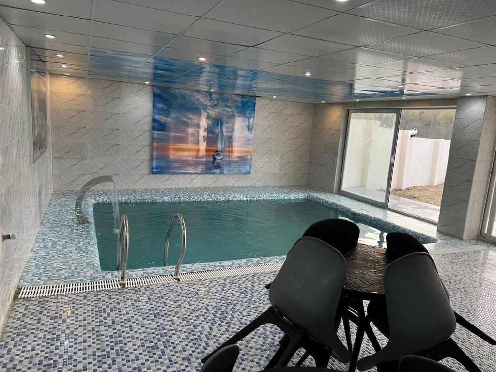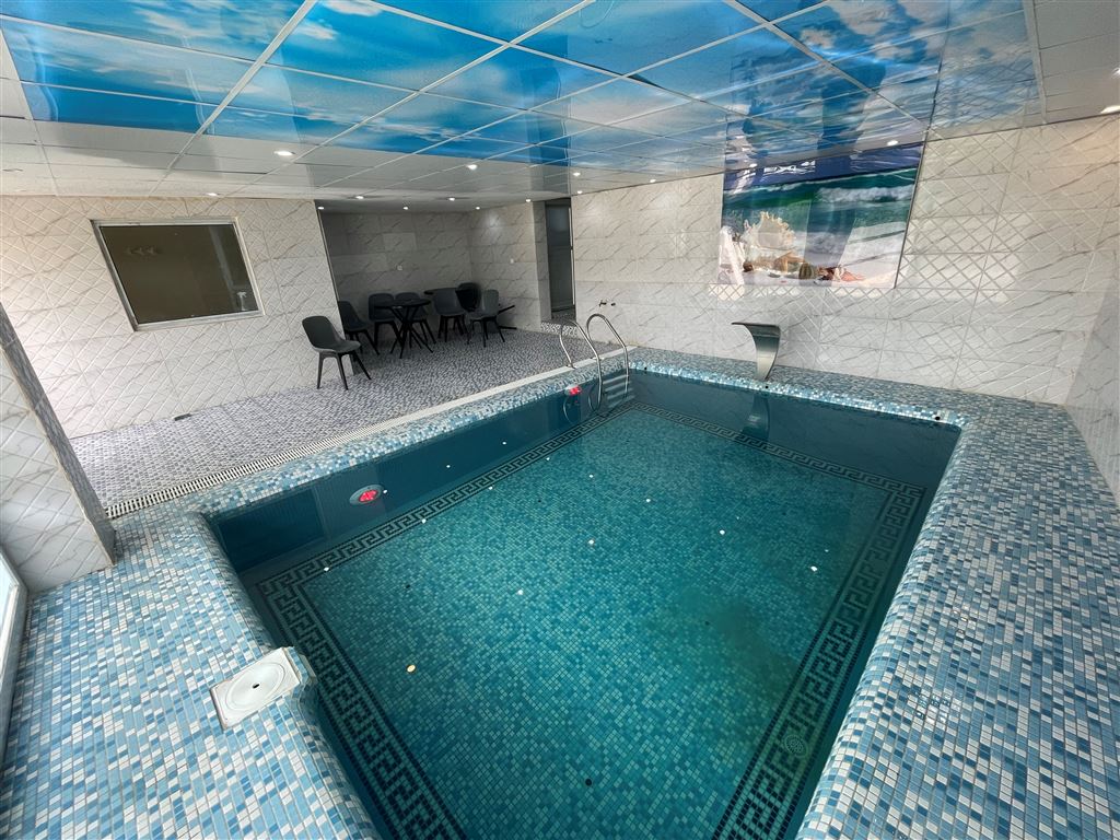 استخر سرپوشیده آبگرم ویلا که به تصفیه اتوماتیک مجهز است به ابعاد ۶ در ۵ متر و به عمق ۱ الی ۱.۵ متر در اختیار میهمانان می باشد، همچنین حیاط اقامتگاه با دیوار و فنس محصور است و به دوربین مداربسته مجهز می باشد.