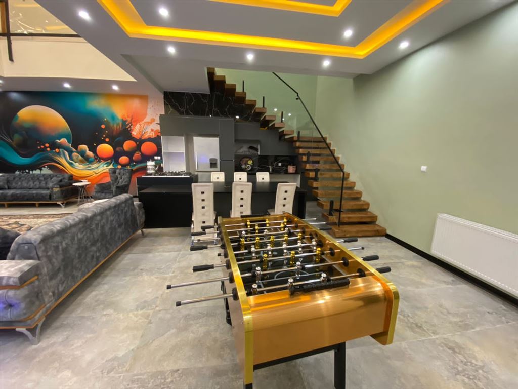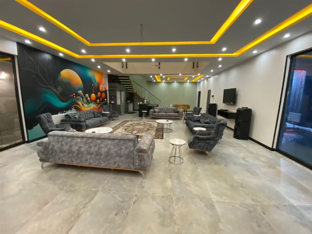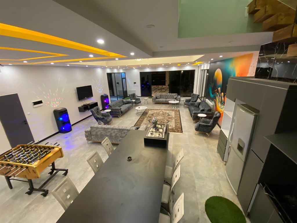 اجاره روزانه ویلا استخر سرپوشیده لوکس همراه با جکوزی فول مدرن کلید نخورده و نوساز بهترین لوکیشن اجاره برای خاص پسندان لوکیشن : چهارباغ کردان ۱۲۰۰ متر زیربنا ویلا دوبلکس ۴۰۰ متر بنا ۴ خواب مستر ۱۰۰ متر روفگاردن بهترین متریال برای سرویس ایرانی و فرنگی در هر طبقه باربیکیو گازی ، استیک پز، گرم کن ، شعله منقل زغالی استخر سرپوشیده ابگرم ،جکوزی جای پارک ماشین ۶عدد سیستم صوتی حرفه ای رقص نور، تلویزون ماهواره تخت سنتی دو دست مبل چستر ۸ نفره یک دست مبلع ۸ نفره استیل ۱۰ عدد تشک تک نفر+پتو بیلیارد ۹ فوت، فوتبال دستی تاب تخته نر امنیت بالا نورپردازی عالی در شب فول کالر تا جلوی در اسفالت ظرفیت رزرو : خونوادگی