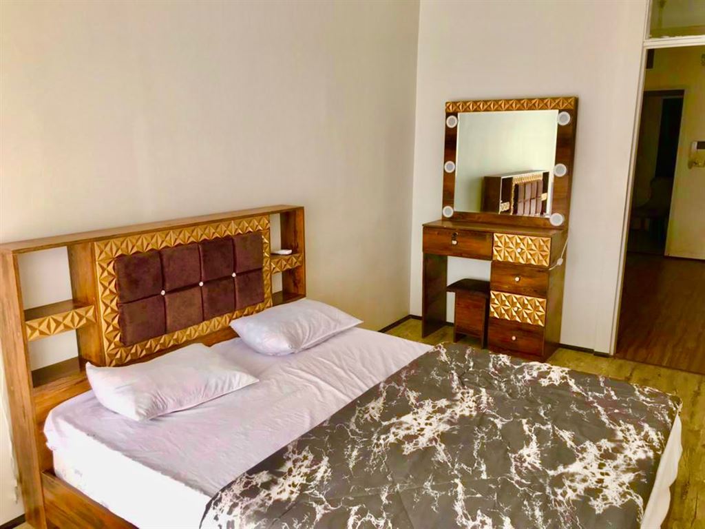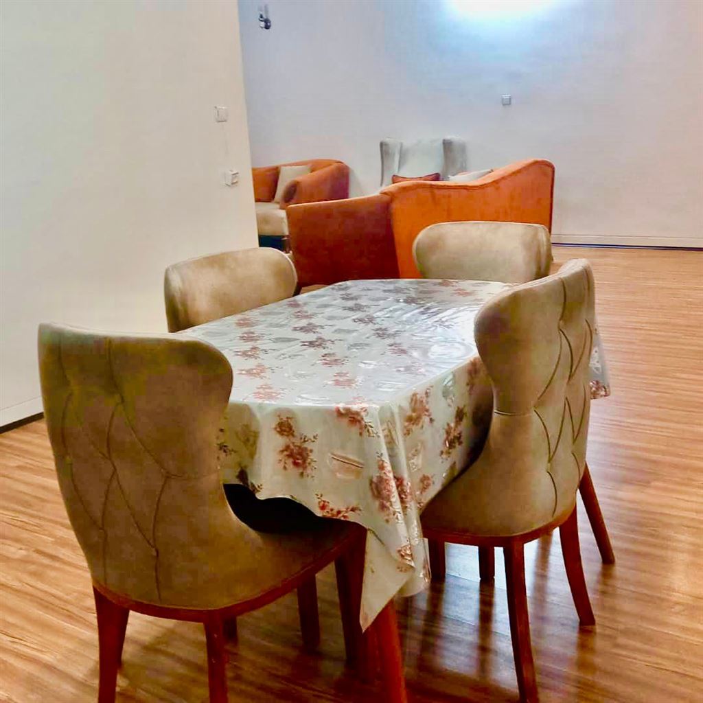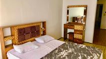 دو خواب شیک طبقه همکف دارای دو تخت دو نفره ملحفه سفید هتلی اسپیلت میز ناهار خوری کف پارکت پارکینگ ریموت دار و کنسول و تلویزیون و ماهواره و اتو و میز اتو سشوار نگهبانی سرویس ایرانی و فرنگی و...
