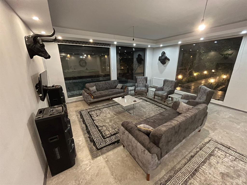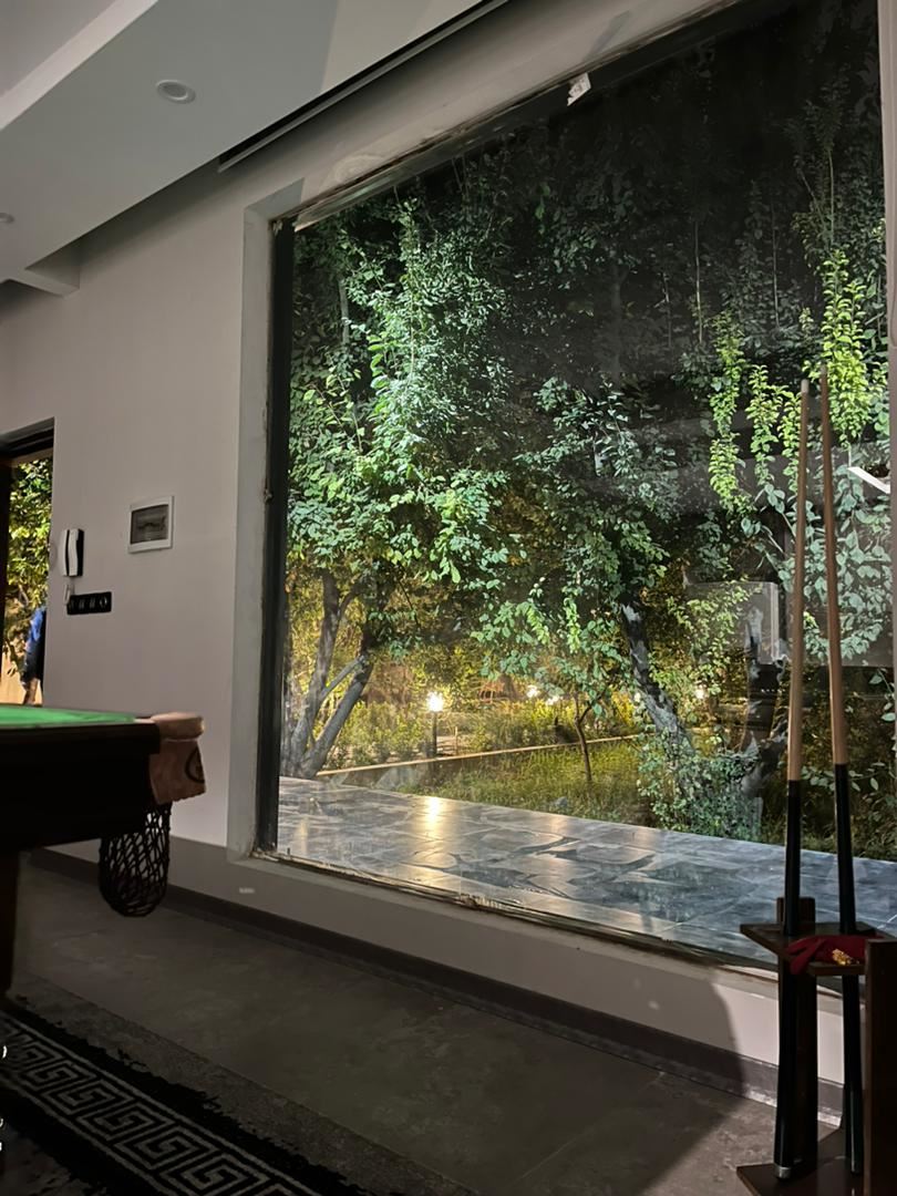 ۱۰۰۰ متر بنای نوساز مدرن دارای فضای سر سبز بسیار زیبا ۱۳۰ متر بنای شیک دو خواب تمام وسایل نو هست مناسب خانواده و افراد سخت پسند آلاچیق بزرگ به همراه صندلی باغی استخر بزرگ چهار فصل آب گرم در ابعاد ۴ در ۸ از عمق ۱ تا ۲ متر همراه تسویه فعال ۲۴ ساعت باربیکیو بیلیارد سیستم صوتی و تصویری حرفهای نور پردازی بسیار زیبای محوطه که زیبایی ویلا را در شب دو چندان کرده است سیستم سرمایش کولر گازی سیستم گرمایش پکیج دسترسی آسان دارای اشتراک سوپر مارکت و فست فود سرویس ایرانی و فرنگی رخت خواب سنتی نگهبان ۲۴ ساعت