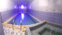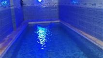 استخر دار سرپوشیده با آب گرم و چشم انداز کوه زمینهای سبز اطراف ویلا جای آرام وبدون مزاحمت همسایه وغیره