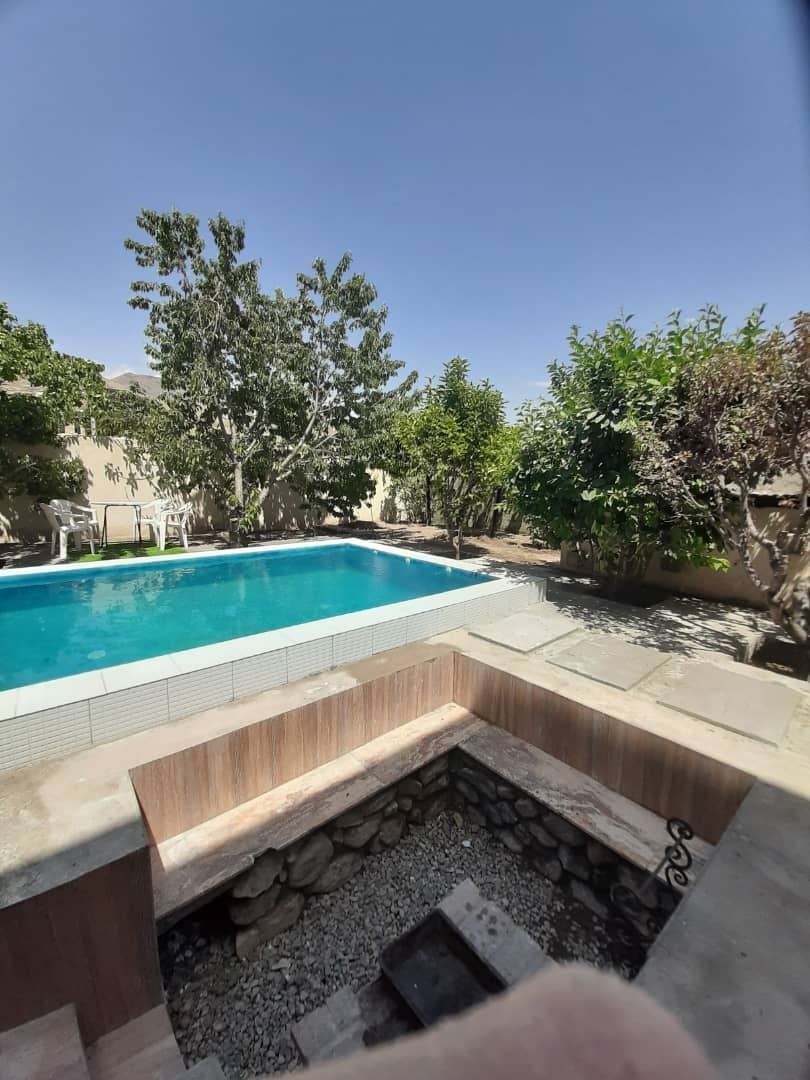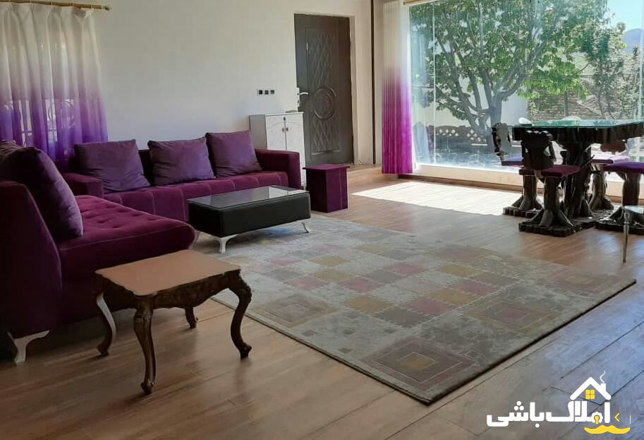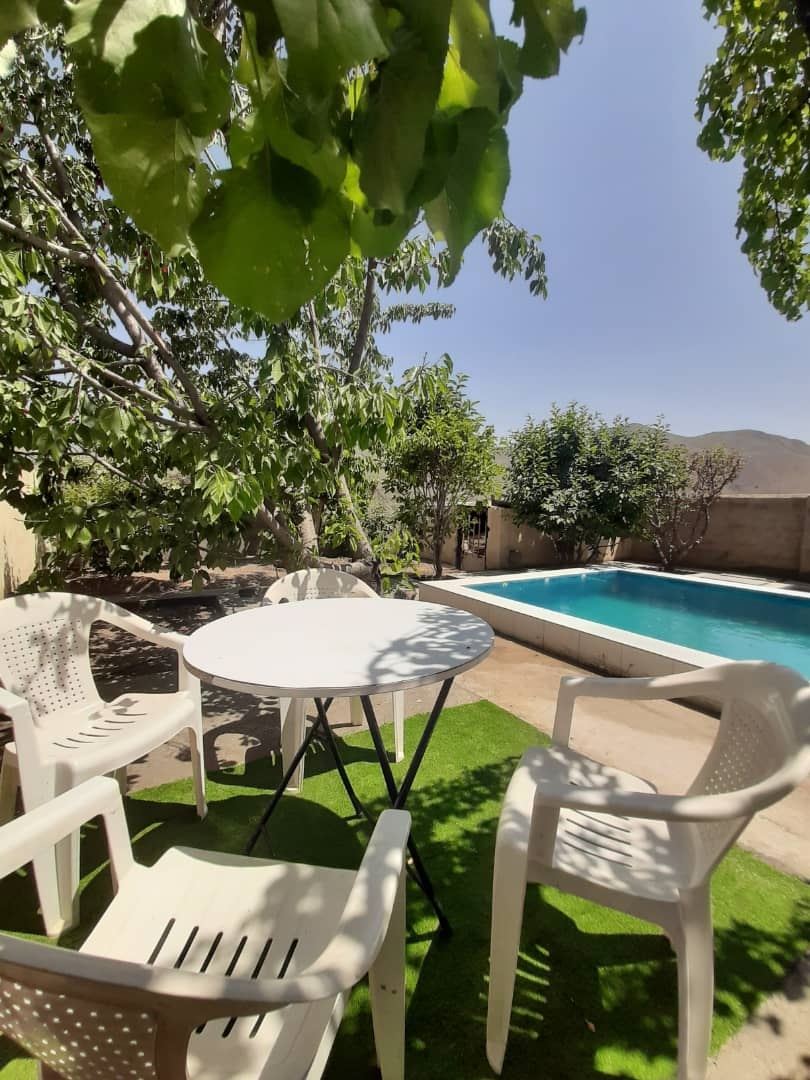 حیاط مشجر،ویو باز و کامل کوهستان از داخل ویلا