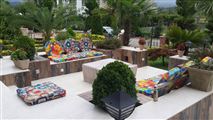 نشیمن فایر پیت هیزمی گازی داخل حیاط و فضای سبز با نادرترین درختچه های زینتی