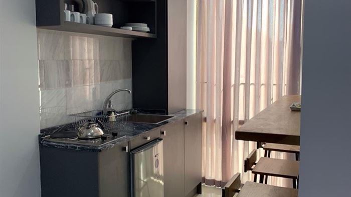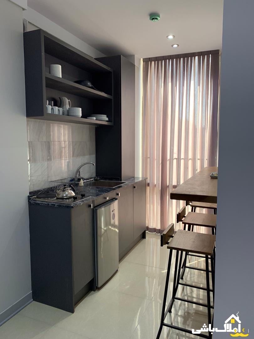 آپارتمان لوکس و فول امکانات، مبله با اشپزخانه و لوازم اشپزي، در مجتمعی 20 واحده در بهترین نقطه تهرانپارس علاوه بر تخت دونفره در واحد تكخواب دارای یک تخت مورفی( كمدي) ،آسانسور، 300 متر لابی،نگهبانی،خدمات هتلینگ و نظافت رایگان، اينترنت پر سرعت رايگان، رختشورخانه، پاركينگ،