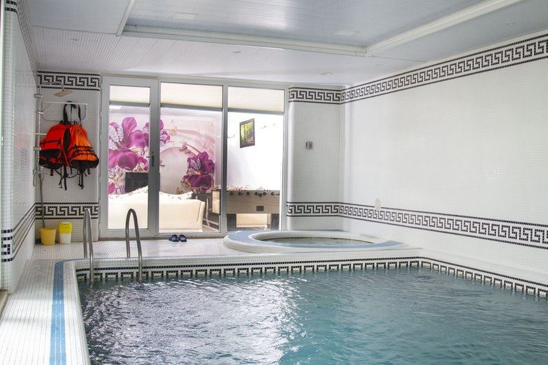 دارای استخرسرپوشیده آبگرم ۳۲ متری ۴ در ۸ بهمراه جکوزی با تصفیه اتومات آب