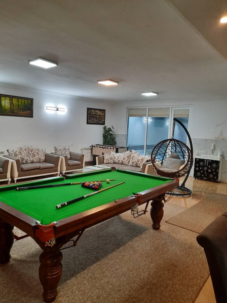میز بیلیارد ، فوتبال دستی ، میز ناهار خوری ۸نفره ، تلویزیون ال ای دی ۴۳ اینچHD ، سیستم صوتی رقص نوردار ، آون توستر ، چایی ساز ، سشوار، سه کولر اسپیلت ، سیستم گرمایشی شوفاژ وکلیه امکانات رفاهی