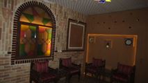 مبلمان سنتی بادیوار و پنجره های سنتی ساز و نورپردازی و مکانی آرام بخش معماری