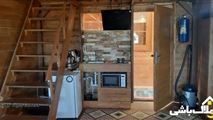 کلبه های چوبی شیک دارای یک اتاق خواب دارای تراس رو به دریا