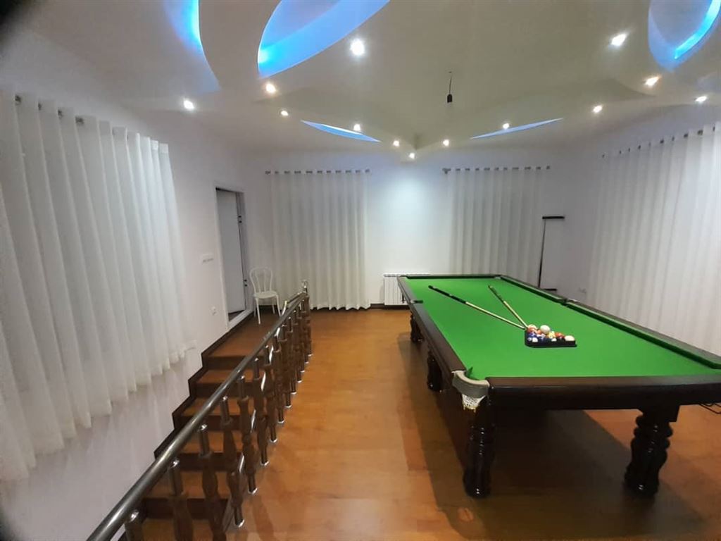 ویلا دوبلکس است. استخر بهمراه سرویس بهداشتی اختصاصی، آشپزخانه و پذیرایی، یک اتاق خواب، سرویس بهداشتی عمومی، شومینه،در طبقه همکف قرار دارد و طبقه بالا هم شامل بیلیارد،مینی بار، اتاق خواب مستر و اتاق خواب،سرویس بهداشتی عمومی، تراس و حیاط خلوت مبله بهمراه بارباکیو و تاب مبله میباشد. یکی از خوابها مستر (دارای توالت و حمام اختصاصی) میباشد.