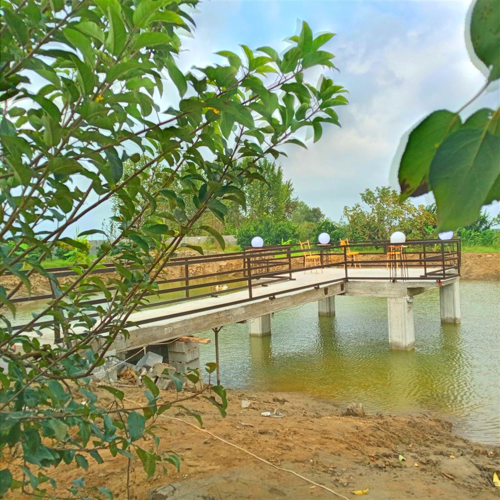 ویلا در یک باغ 5000 متری هست که وسط باغ 1500 متر دریاچه داره وسط دریاچه یک اسکله بنا شده که با پل به باغ ارتباط داره